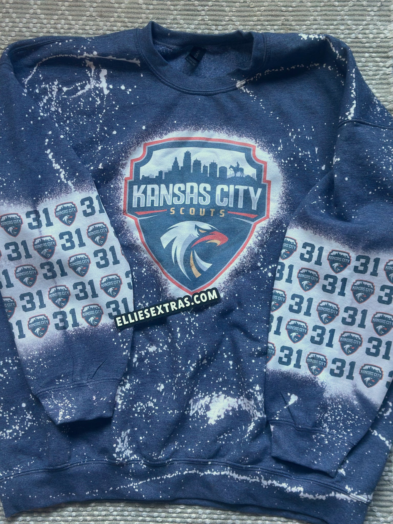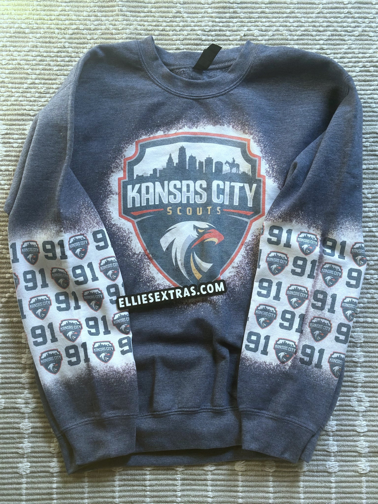 This listing is for 1 bleached crewneck sweatshirt with a sublimation design. Leave a note at checkout with your number for sleeve design. Our Sweatshirts are a cotton polyester blend. Brands will vary based on availability.